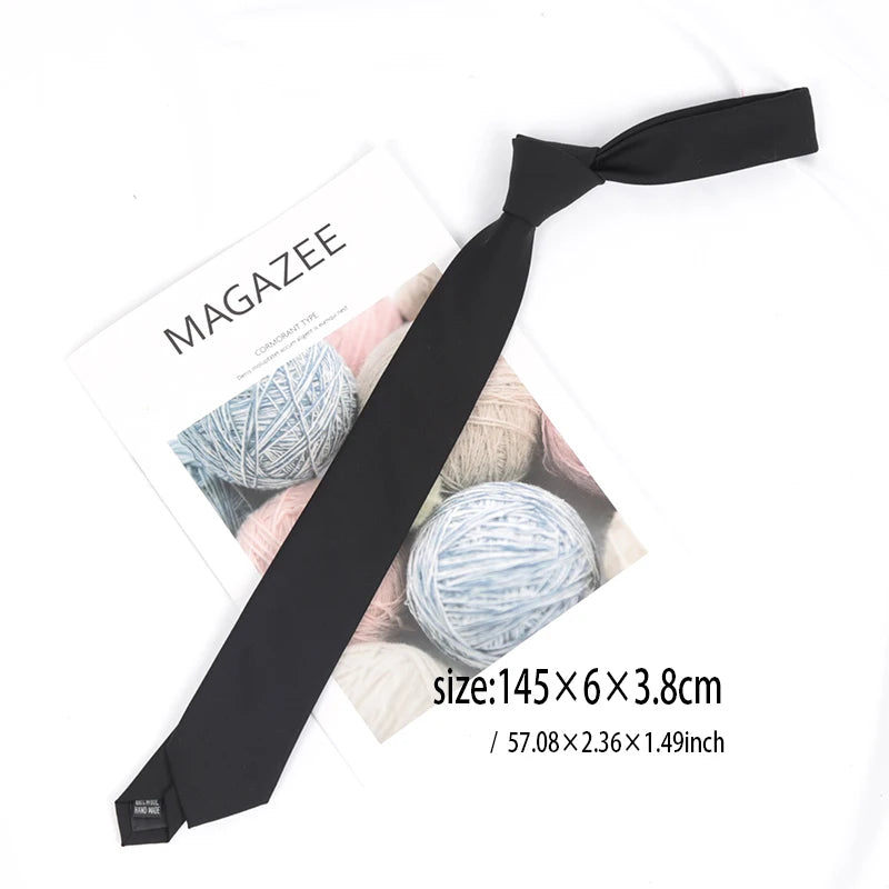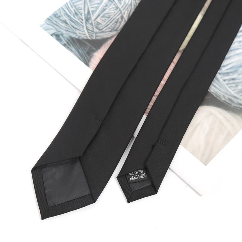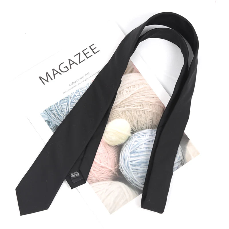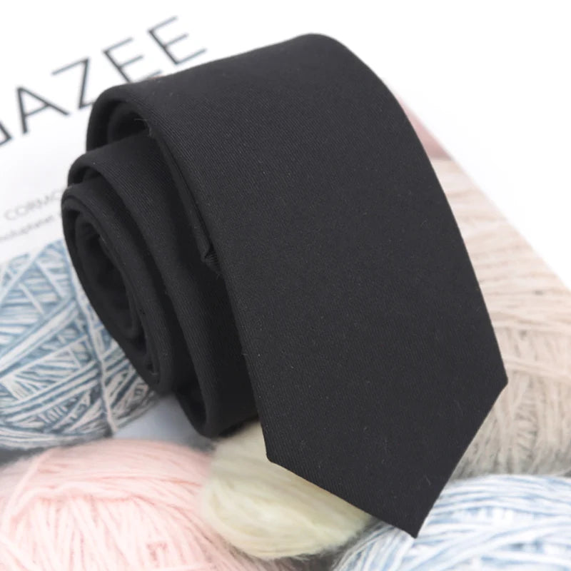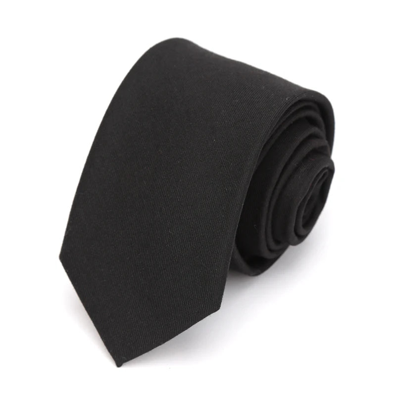 Cravate unie en coton noir pour hommes, col étroit, cravates fines