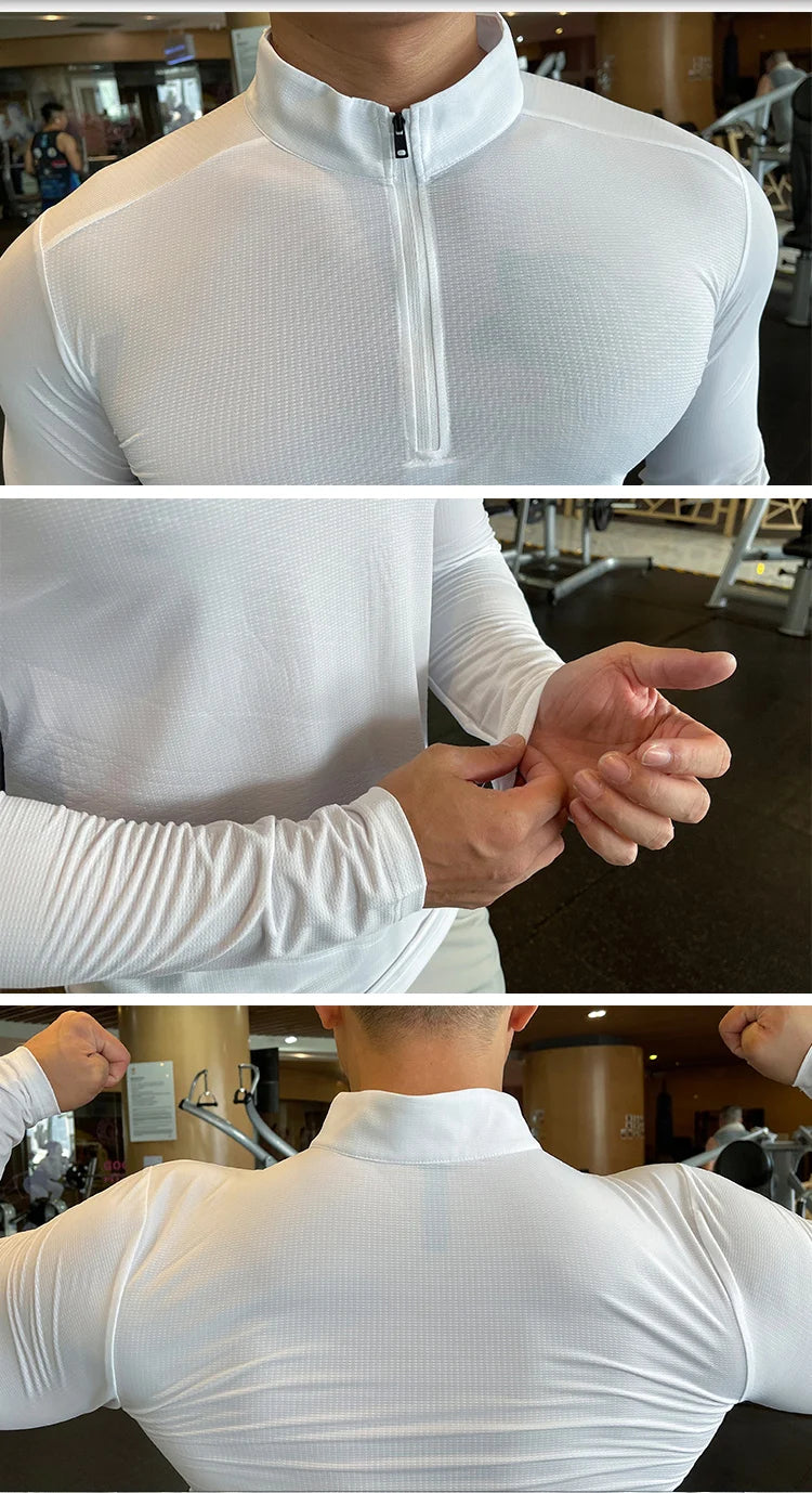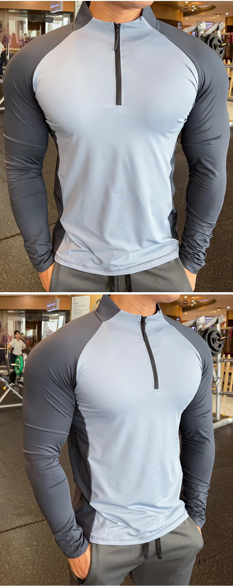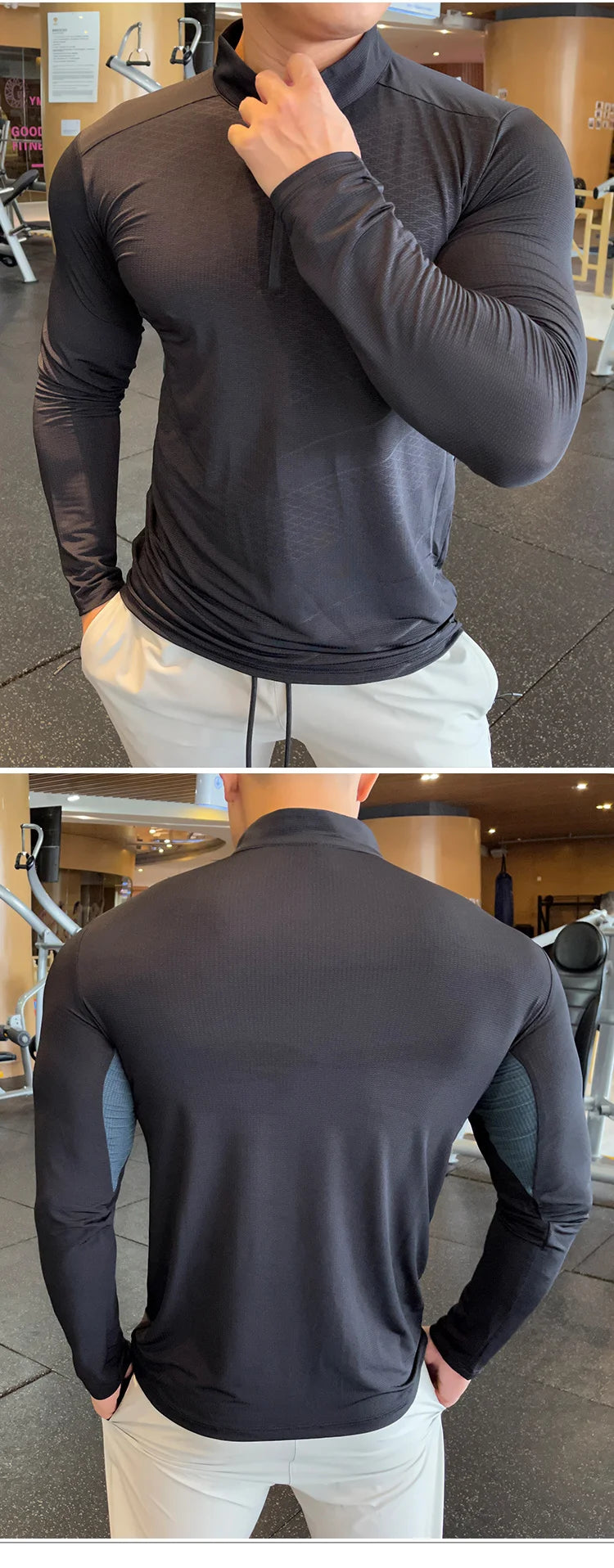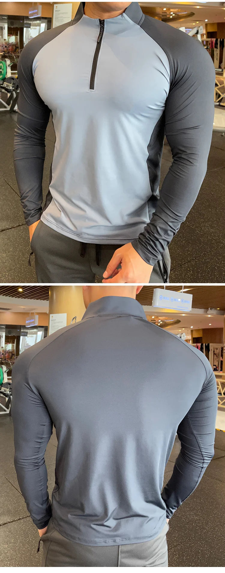 T-shirt d'entraînement de Fitness pour hommes, hauts de gymnastique, sweat-shirt de Compression pour course à pied, maillot de Football, vêtements de sport à col haut