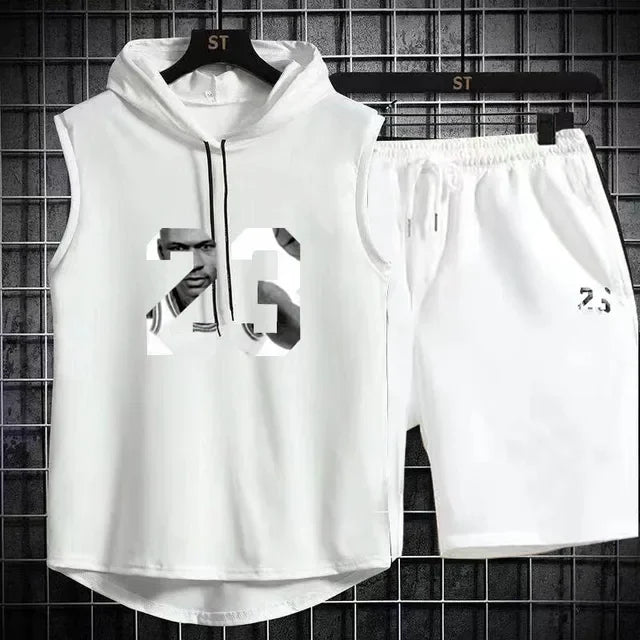 Ensemble deux pièces décontracté d'été pour hommes - T-shirt à capuche et short à manches courtes