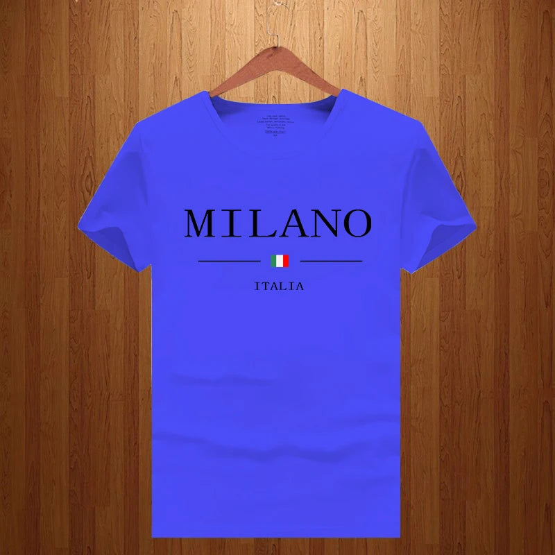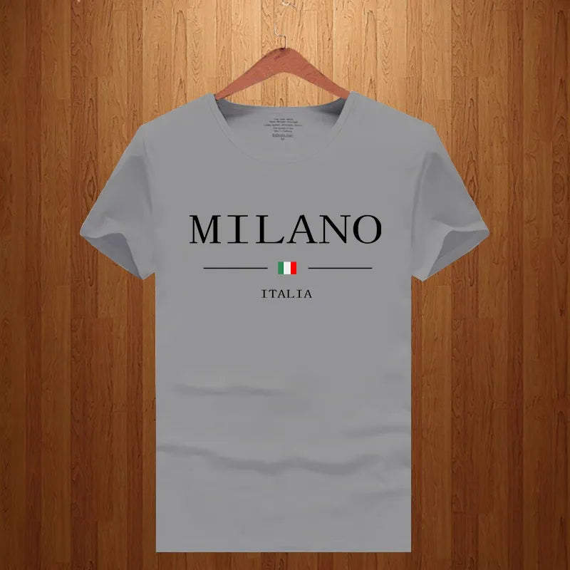 T-shirt à manches courtes en pur coton imprimé lettres Milano