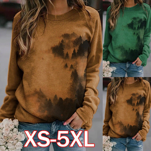 Sweat-shirts imprimés à manches longues et col rond à motif de montagnes