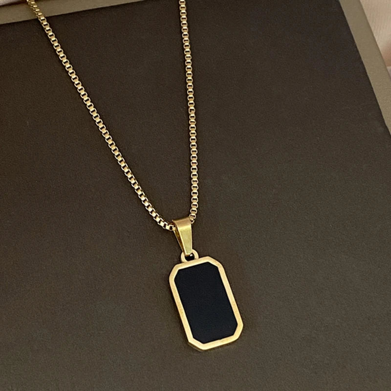 Collier noir pour femme – Pendentif carré tendance avec tracker d'humeur
