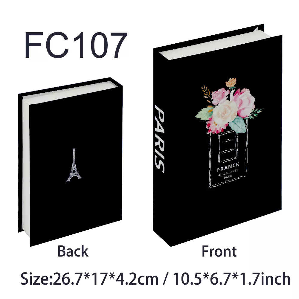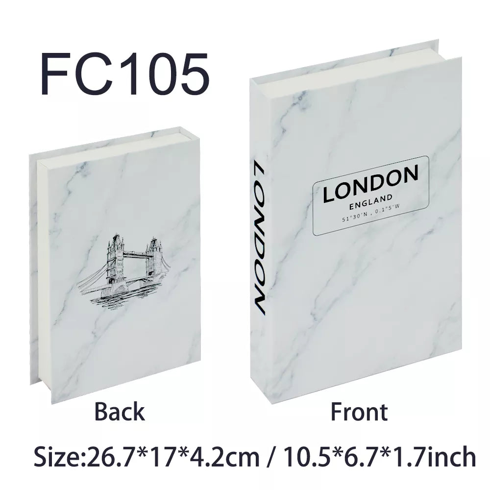 Technologie : Le livre décoratif est transformé en modèle avec du papier cuir dur et collé avec de la colle ou du ruban adhésif double face. Il y a une bande magnétique au milieu du livre ouvert, pratique à ouvrir et à utiliser.