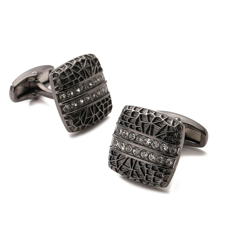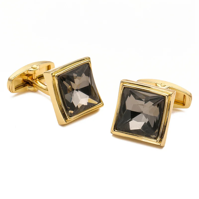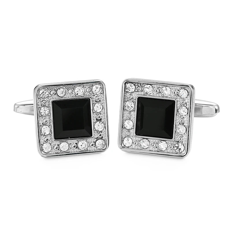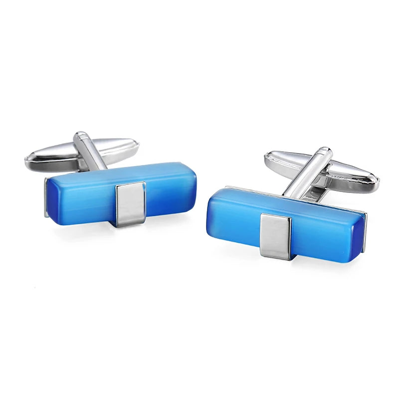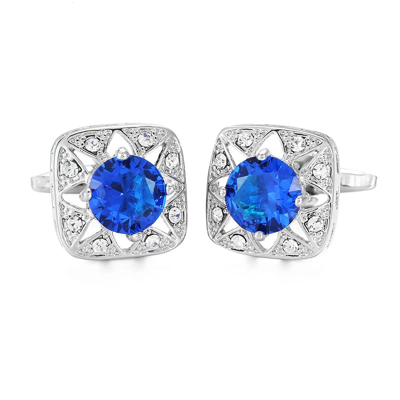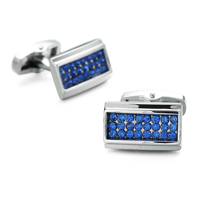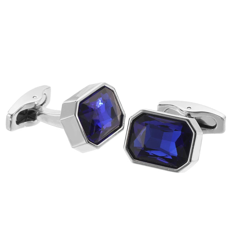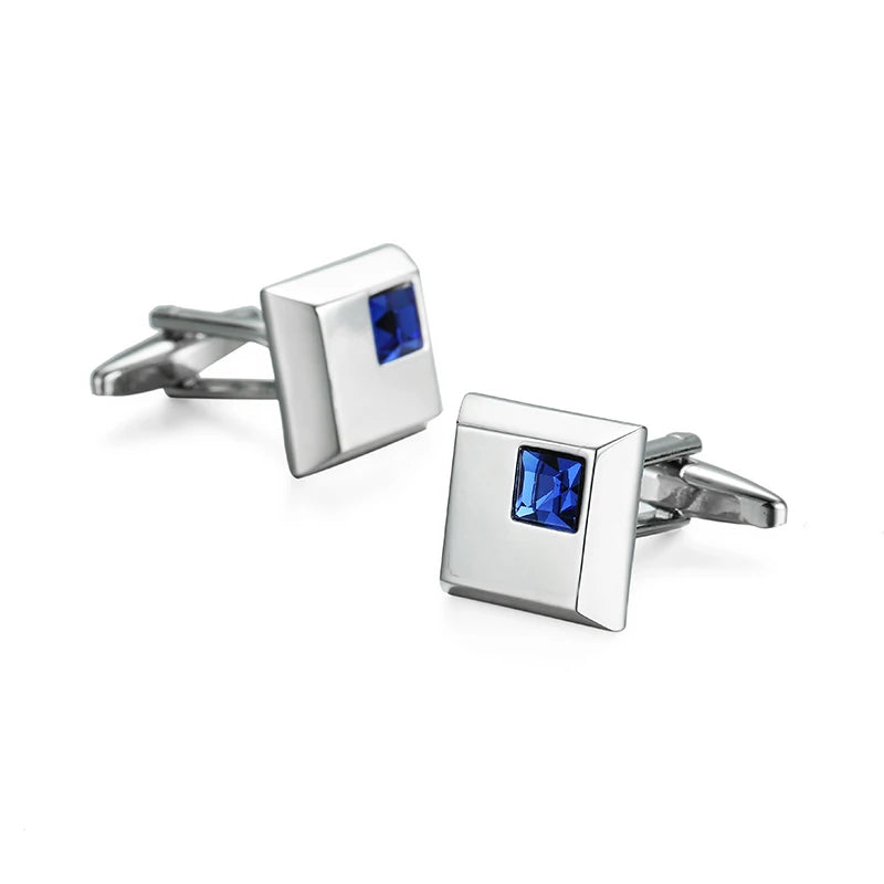 Boutons de manchette en cristal bleu en acier inoxydable