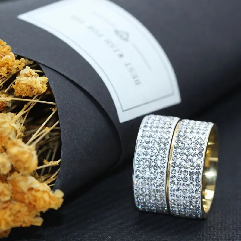 Alliances unisexes de luxe en acier inoxydable avec strass et cristaux