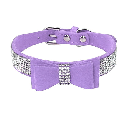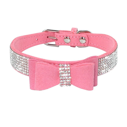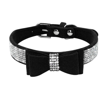 Collier pour chien confortable en cuir avec nœud papillon et strass