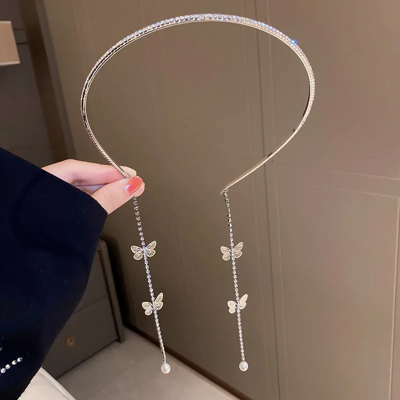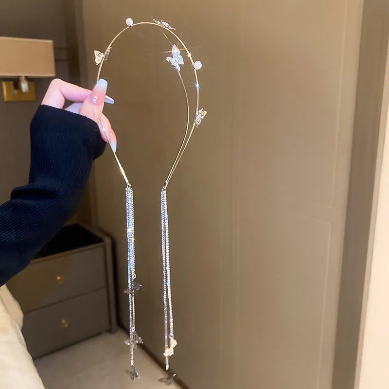 Femmes papillon strass cristal longue chaîne gland bandeaux