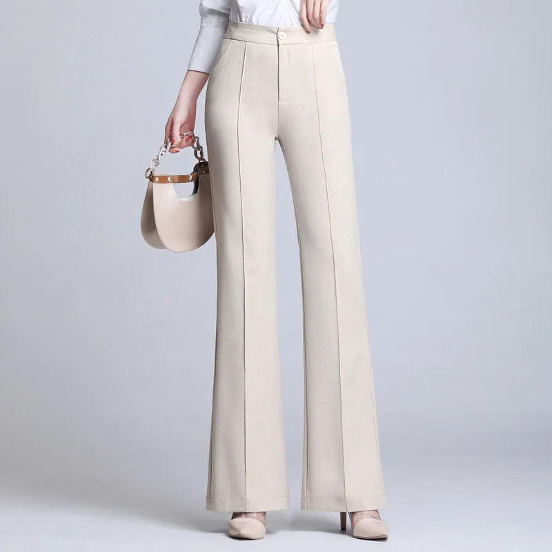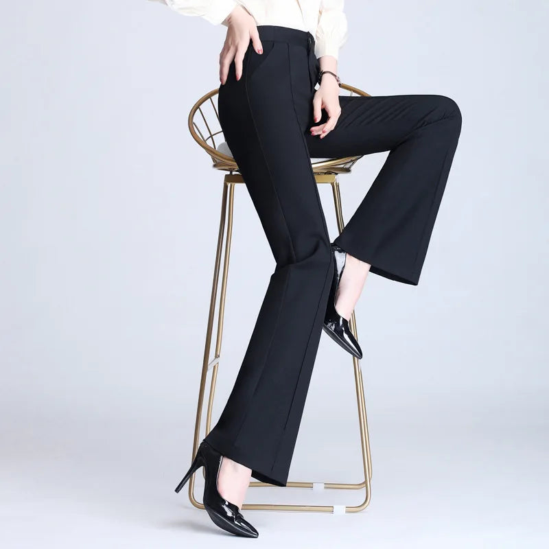 Pantalon droit de bureau à carreaux taille haute pour femmes