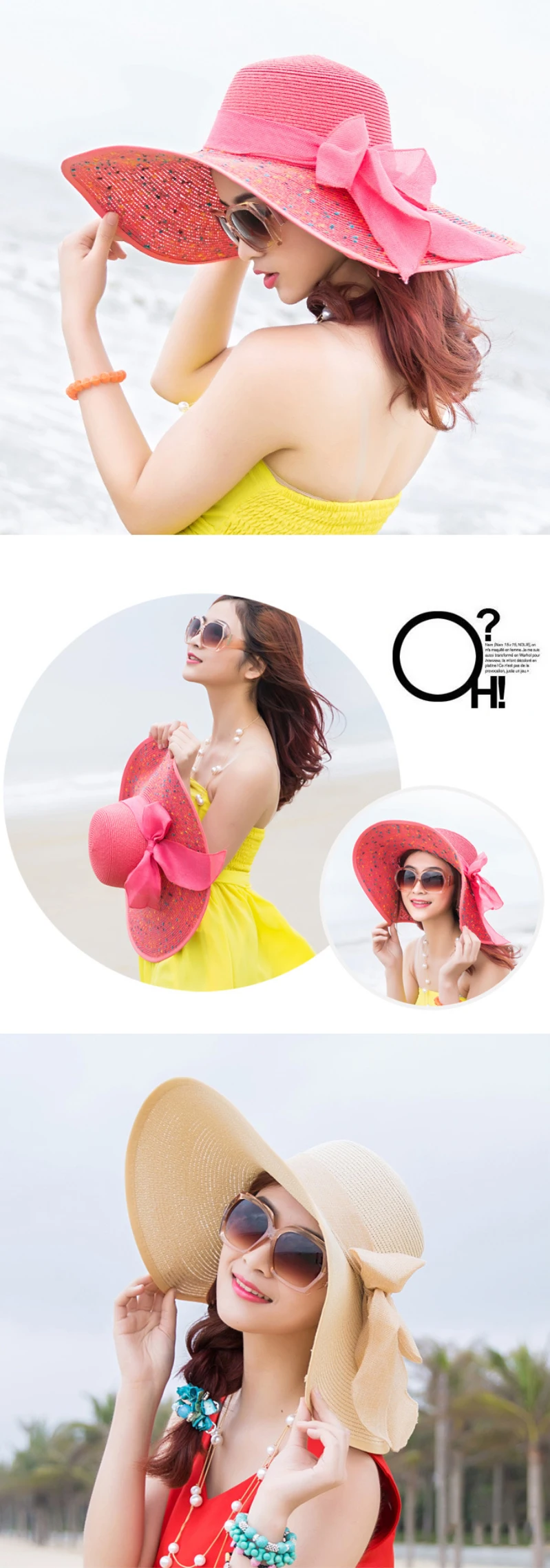 Chapeau d'été en paille à grand bord pour femmes, avec nœud, mode soleil, casquette Panama souple à large bord, pliable, protection Uv, voyage, chapeaux de plage
