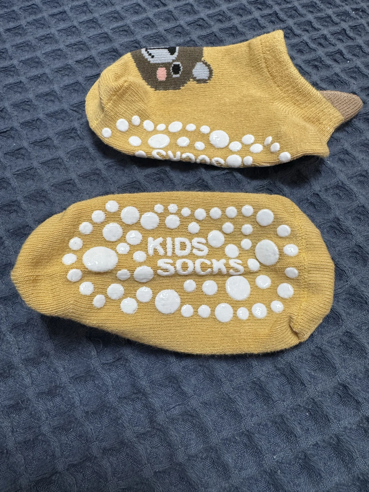 The socks are excellent, the pads on the feet are soft, slightly sticky, not dry, which ensures good grip for the child on the surface. We wear size 23, and I ordered socks in size 1-3 years, which fit perfectly. However, there were some issues with the delivery; the package was stuck between China and Russia for almost a month. I will order another color, as it's much cheaper here than on Wb and Ozone.