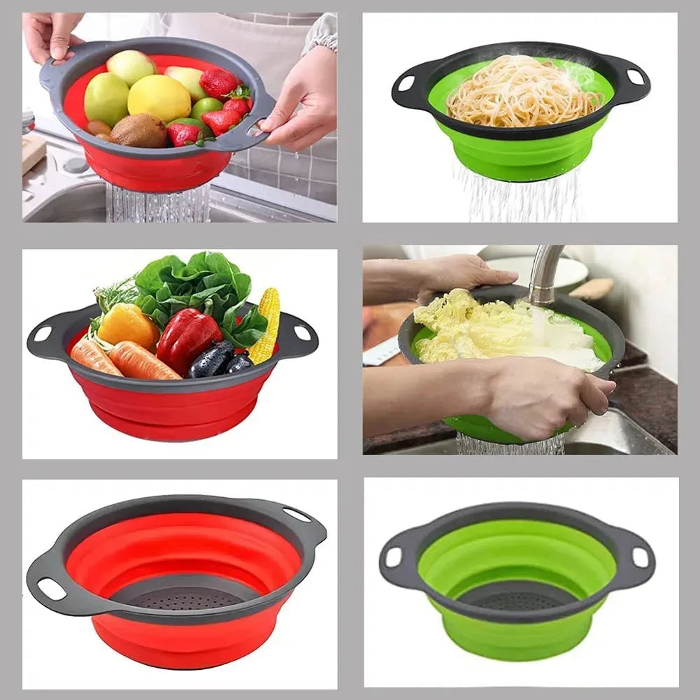 2pcs Silicone Round Folding Vegetable Washing Basket