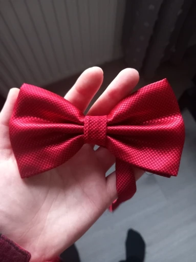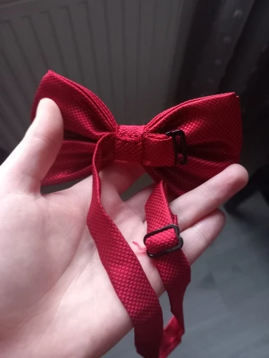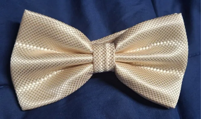 Dung Turner The little tie is very pretty, it's yellow in color but looks a bit paler in the photo due to the lighting effect, it's adjustable.