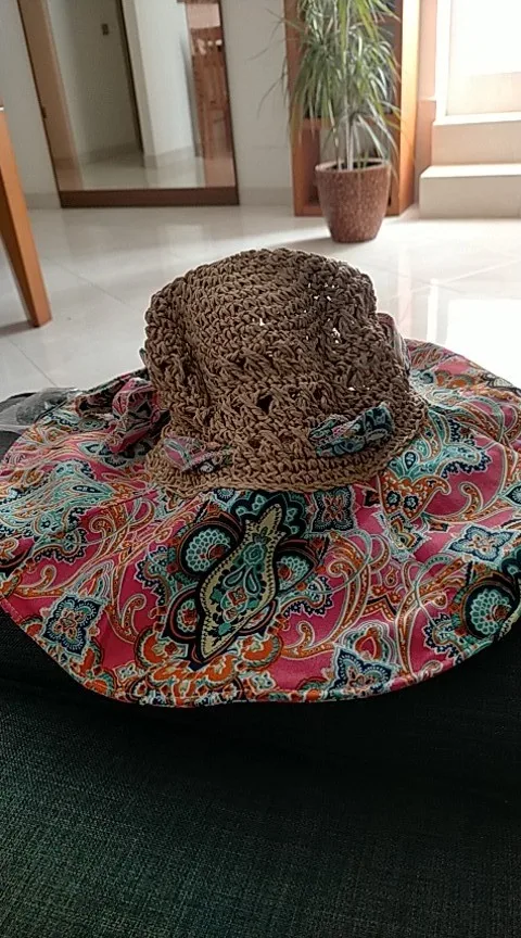 Warner Larkin Perfect! Should do the job. Says it's 100% paper but the rim and ribbon are most definitely fabric. Feels kind of poly cotton. Very pleased with it