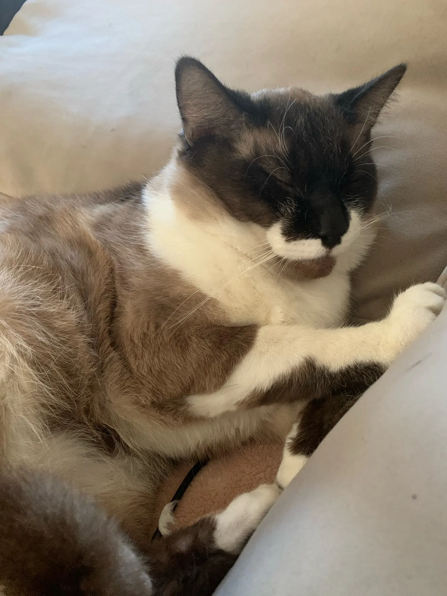 Lonny Durgan It doesn't pinch since it's adjustable, even though it's a big-headed and fat cat weighing 7Kg, it did fit.