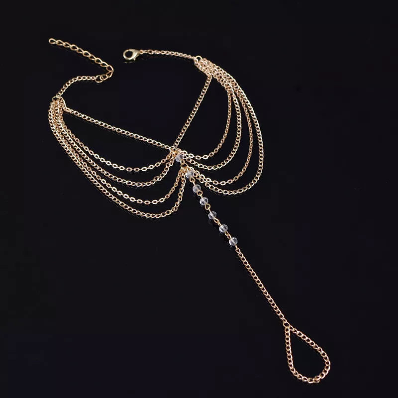 Charm Layer Chain Link Crystal Beads Anklet Bracelet