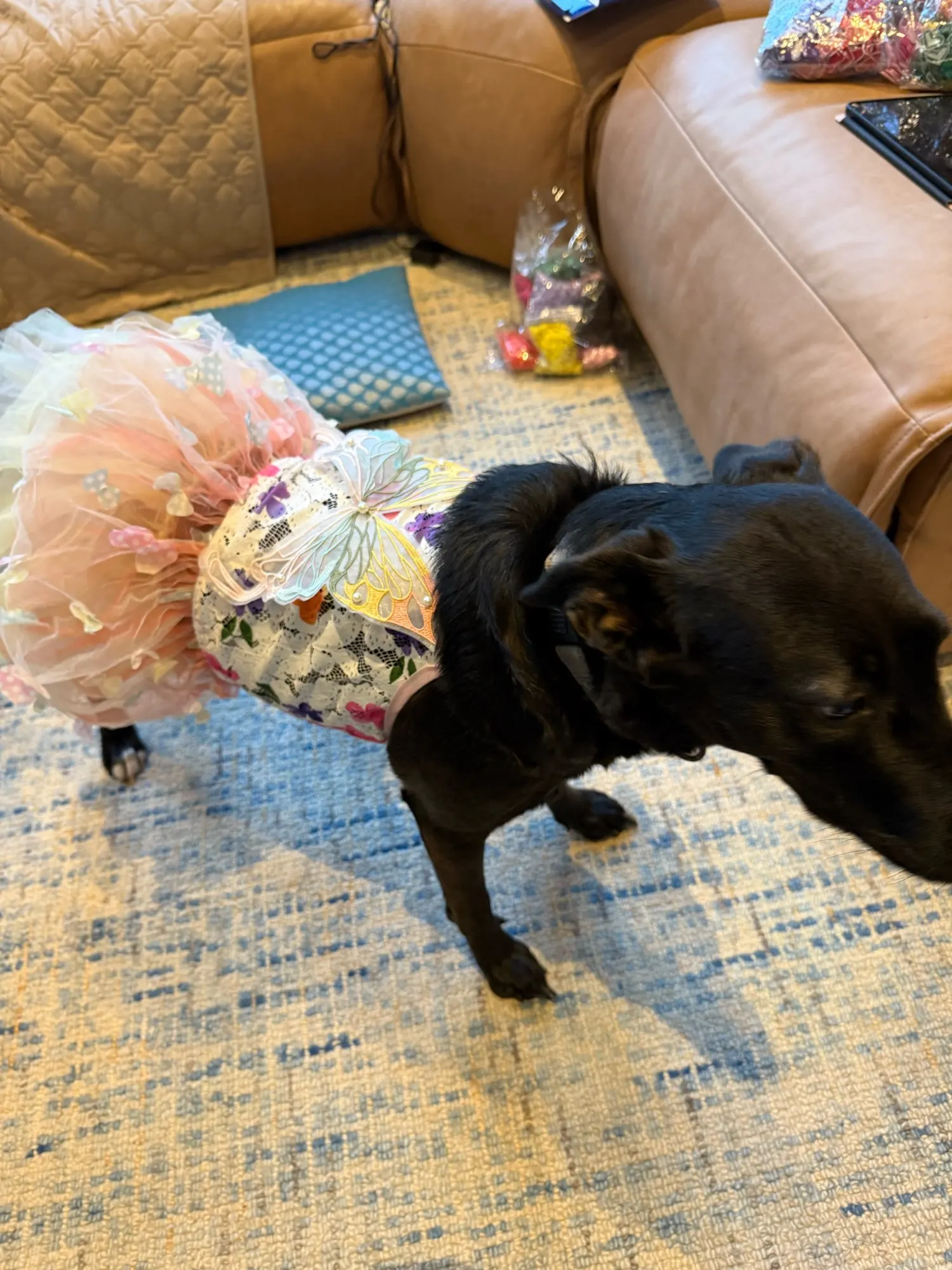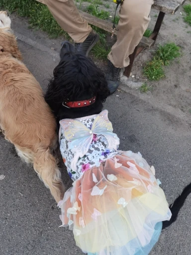 Minh Adams The dress is very beautiful, I'm happy because it fits my dogs' sizes. My dogs have a back circumference of 50 and a chest circumference of 65. I asked for elastic and it's perfect for my dogs.