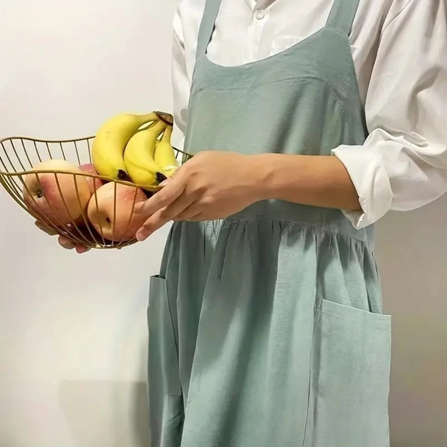 Unlike classic pinafores that put too much pressure on your neck, our garment comes in a comfy cross-back style. The straps lie on your shoulders to relieve tension on your neck, so you won’t feel sore and uncomfortable even if you cook for hours.