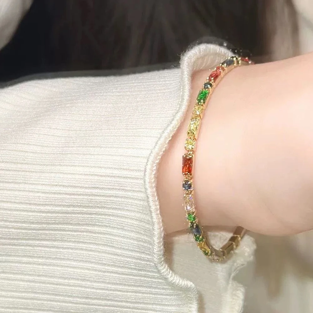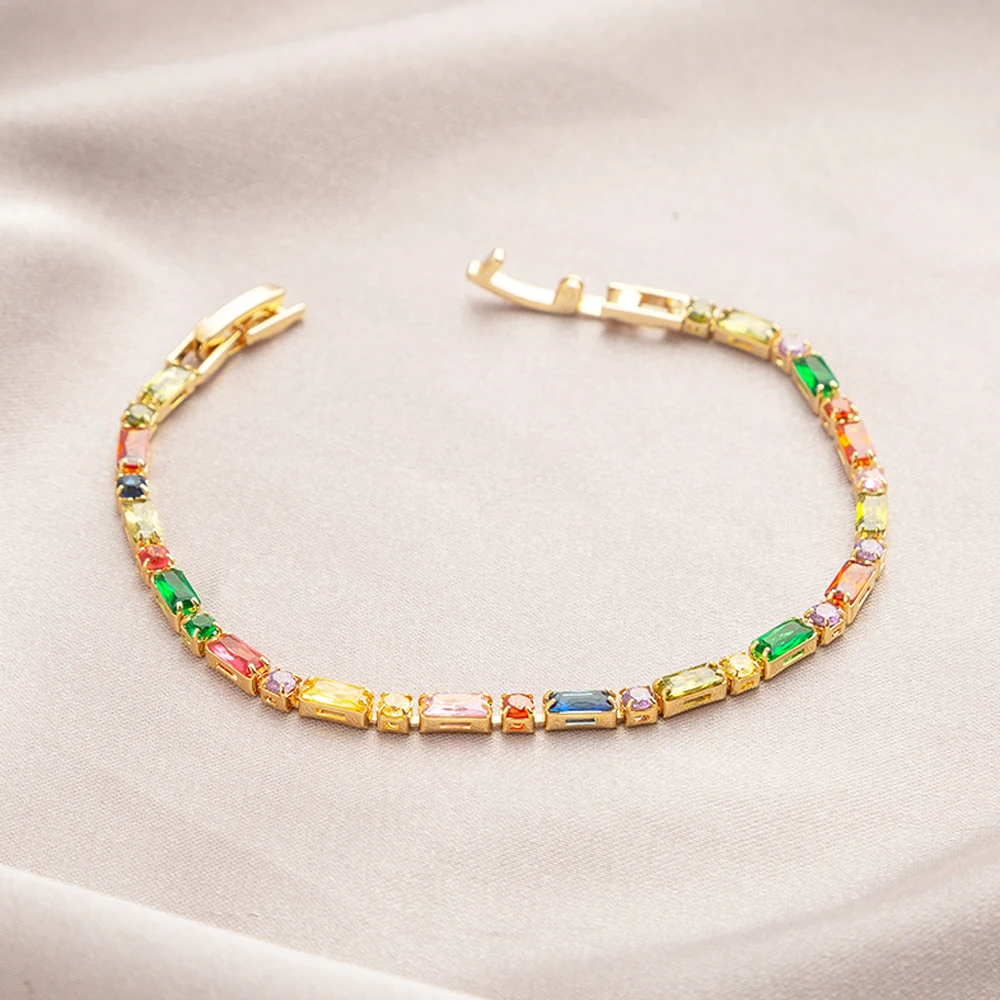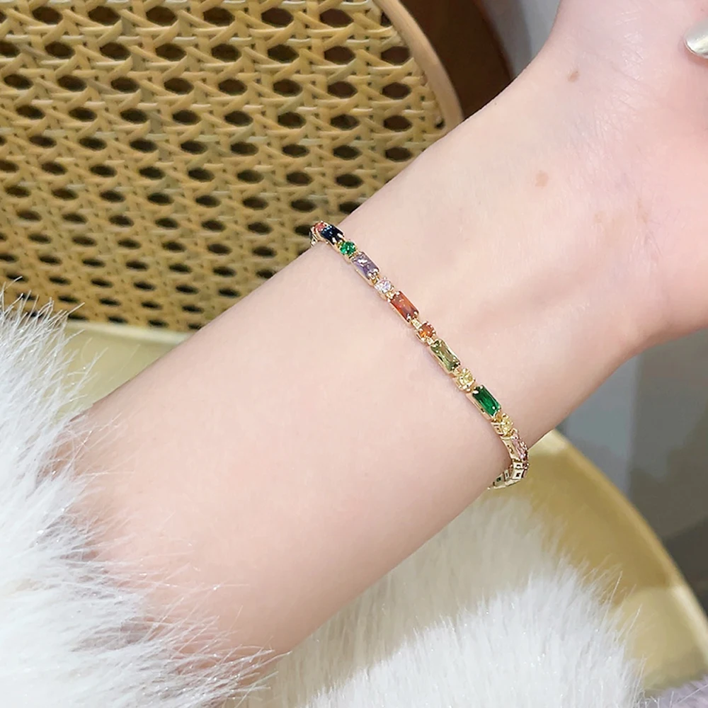 Colorful CZ Tennis Chain Bracelet for Women – Crystal Iced Out Zircon Chain Bangle