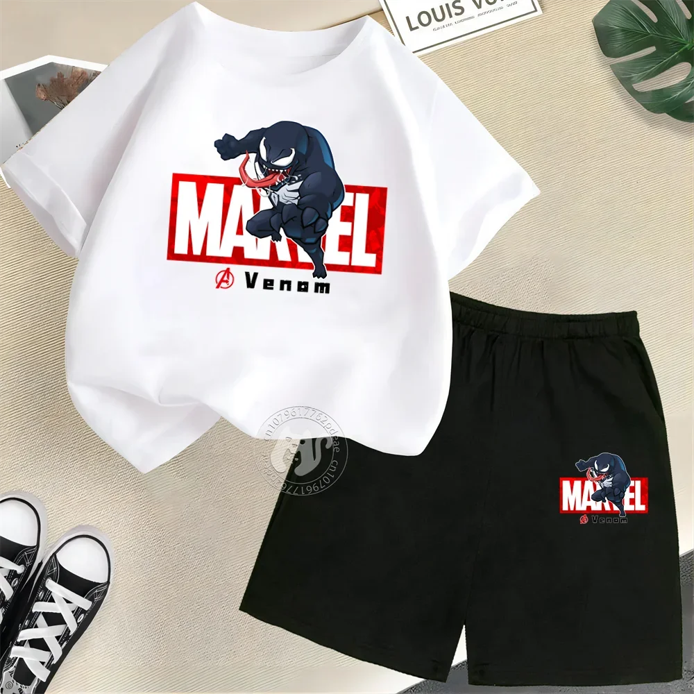 Kid's Cute Cartoon Cotton Print Short Sleeve Outfits