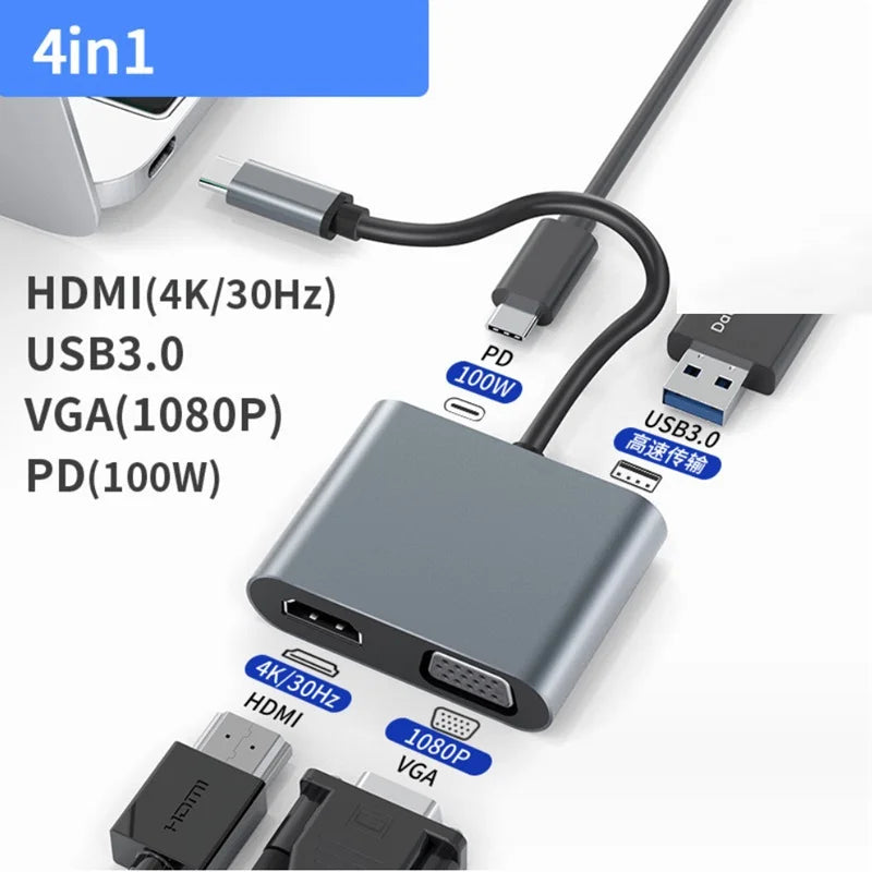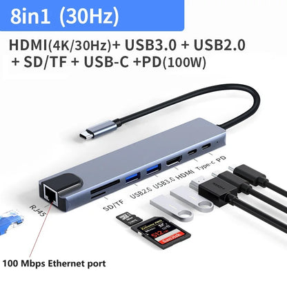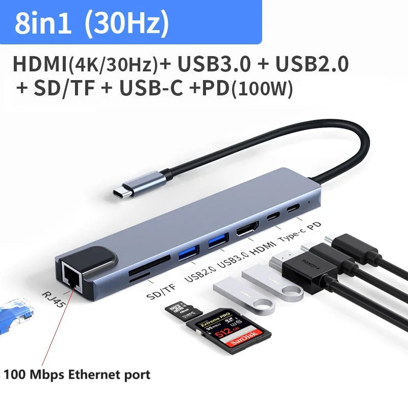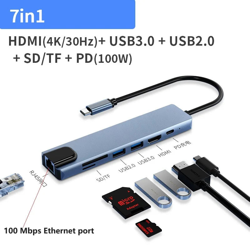 Dock Adapter HDMI-compatible VGA RJ45 Splitter PD Charge Type-C USB