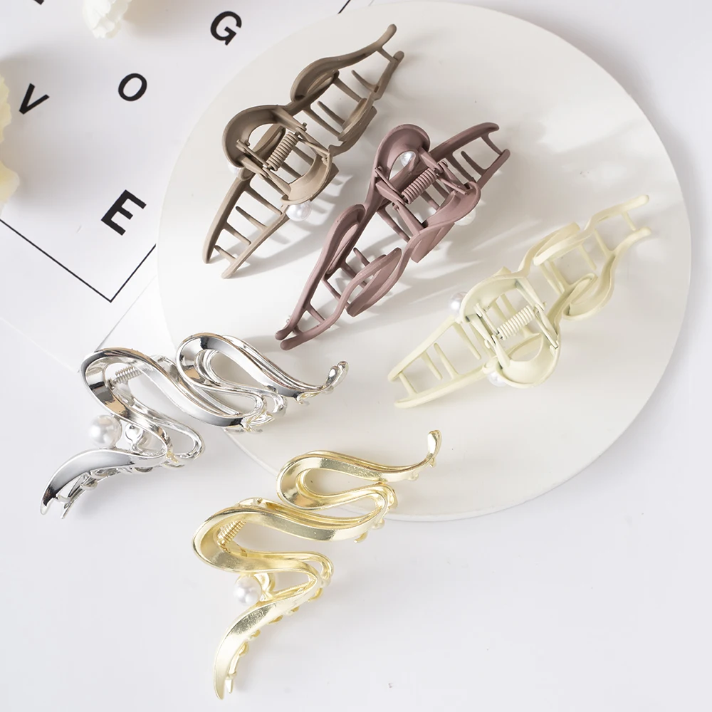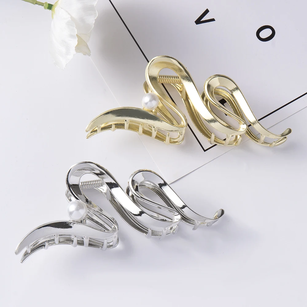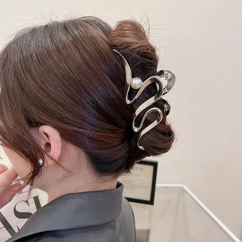 Irregular Metal Pearl Hair Claw Clips for Women – Alloy Barrettes