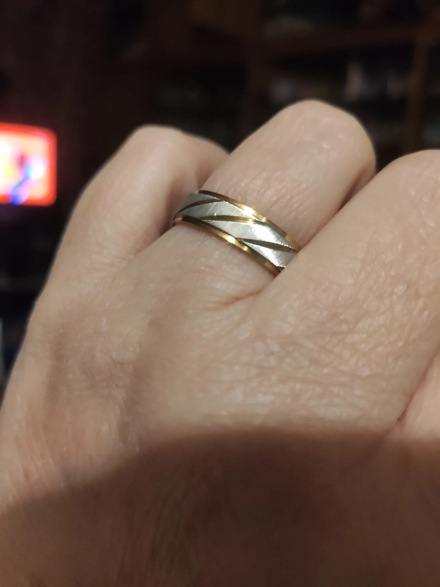 Sung Wisozk very beautiful, ribbed and sparkling, a combination of gray and yellow 👍 I highly recommend the ring. Thank you to the seller, sent without delay.