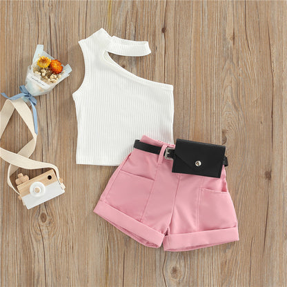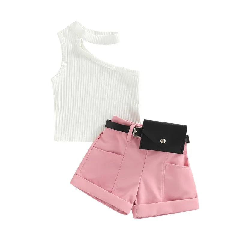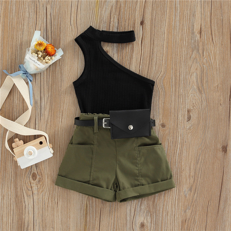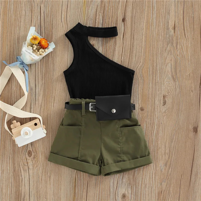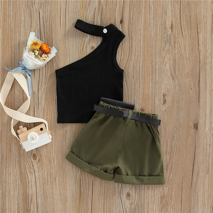 Kid's Sleeveless One Shoulder Shorts Outfit