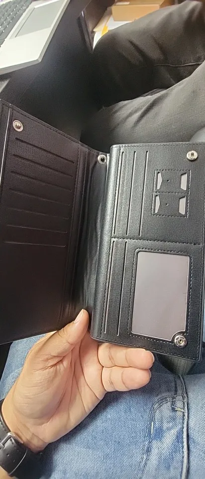 A gift for my husband. It arrived safely today. It has a luxurious feel, but it seems to be too big for my husband, who always keeps his wallet in his pocket. I might use it as my second wallet.