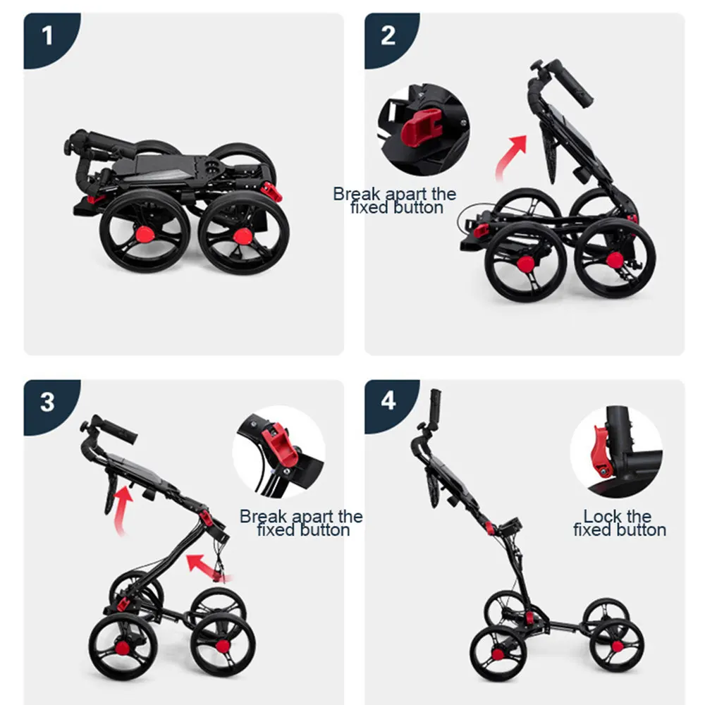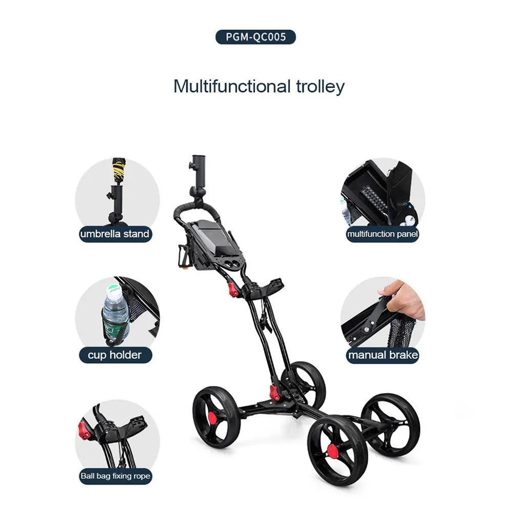 Foldable Four-Wheel Golf Cart Aluminum Alloy Trolley Umbrella Holder