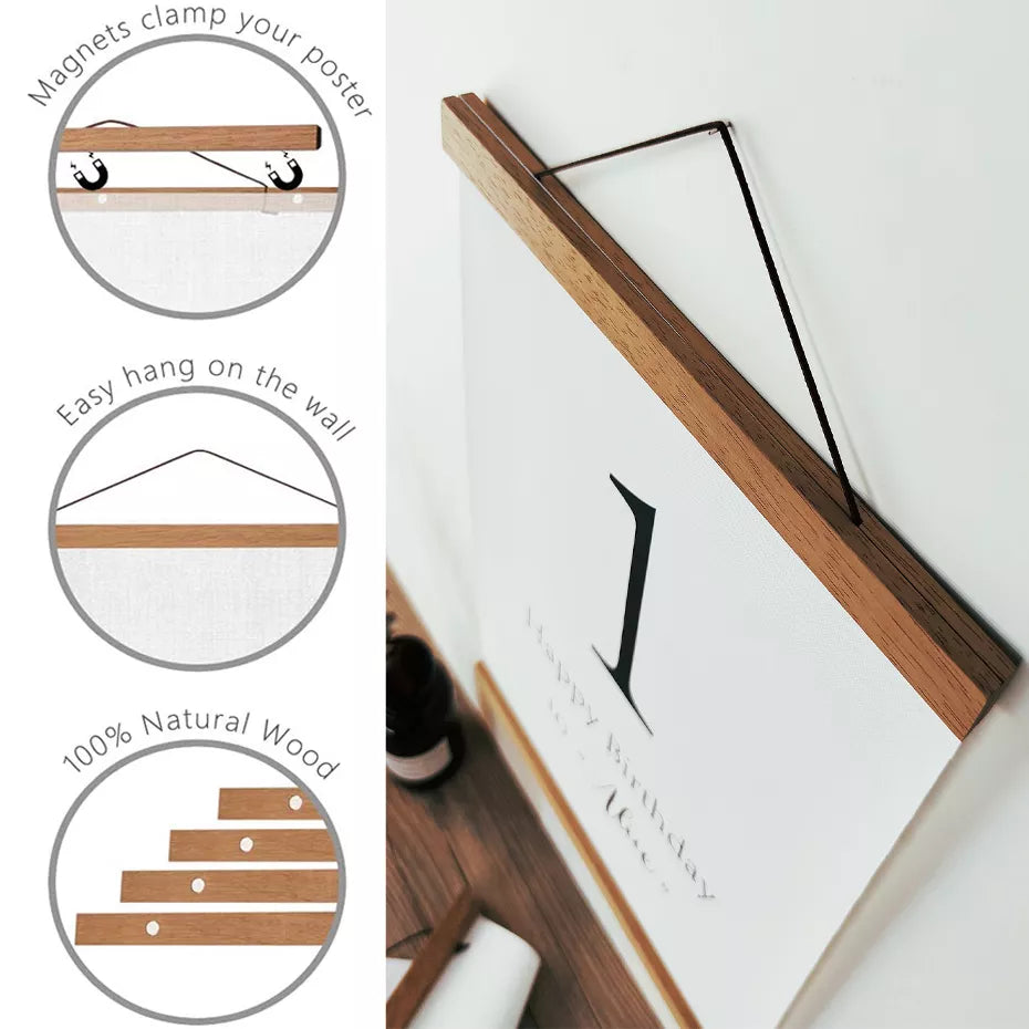 Protect your posters, prints, photos and fabrics. The modern design of our hanger will enhance your artwork. Each set contains 2 wooden strips, The perfect, quick way to hang the prints in your home.