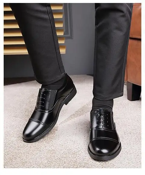 Men’s Genuine Leather Slip-On Dress Shoes – Lightweight Business Formal Oxford