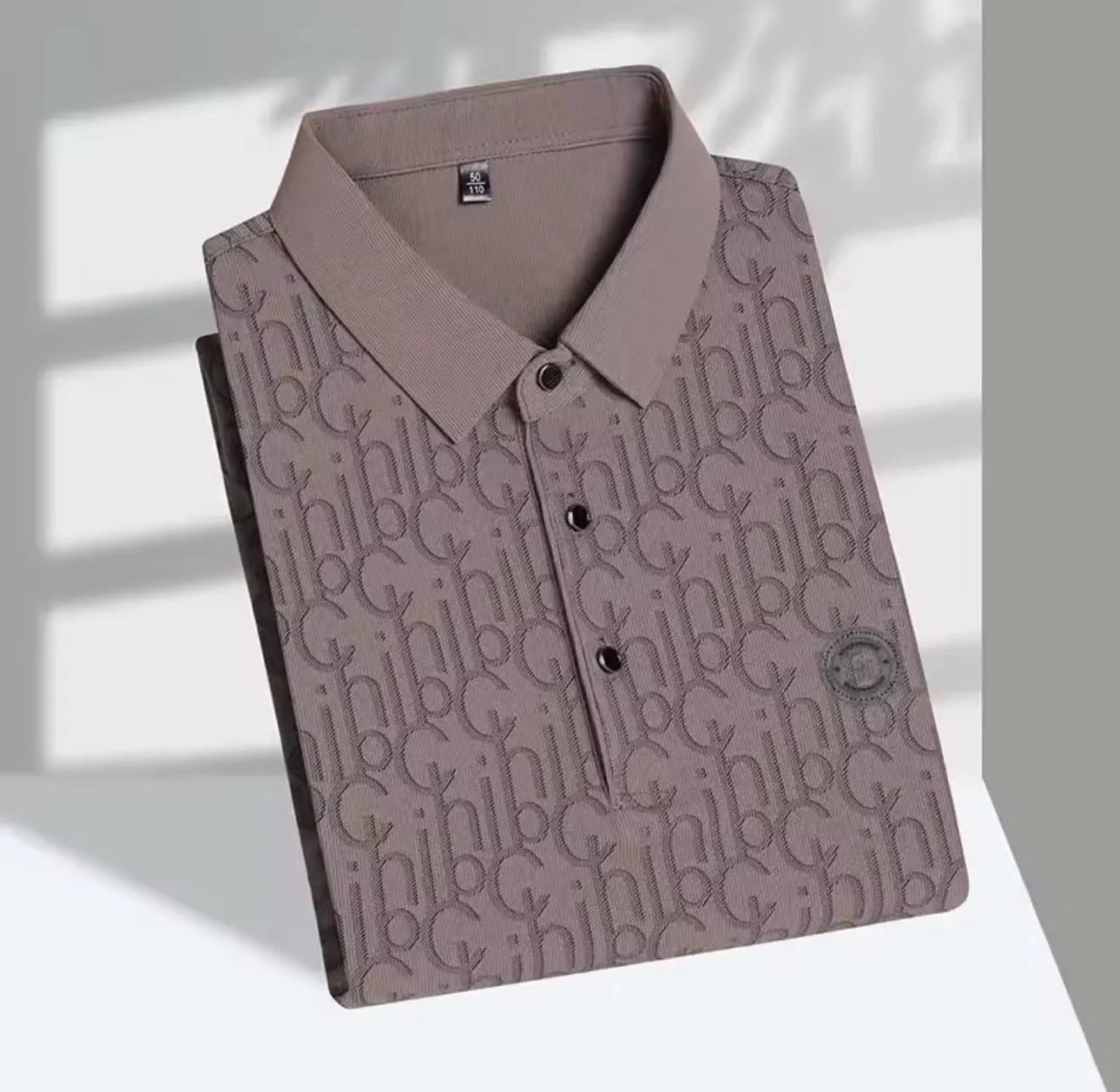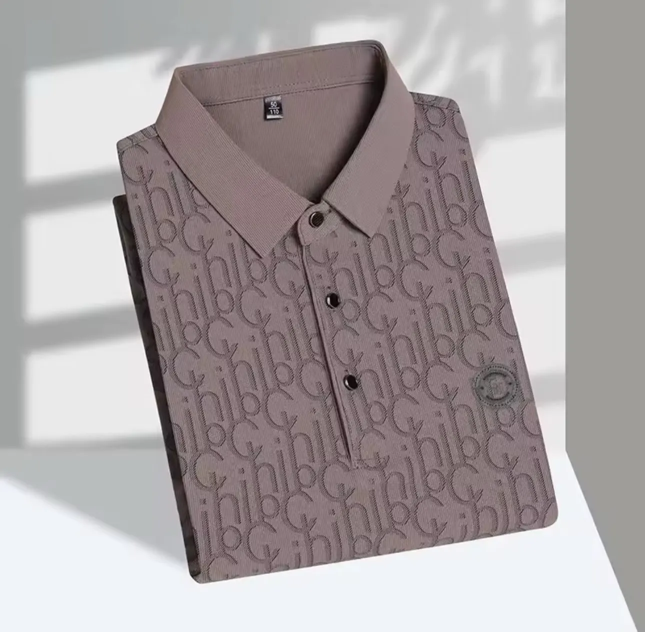 New High-end Silk Short Sleeved Polo Shirt for Men's Luxurious Embossed