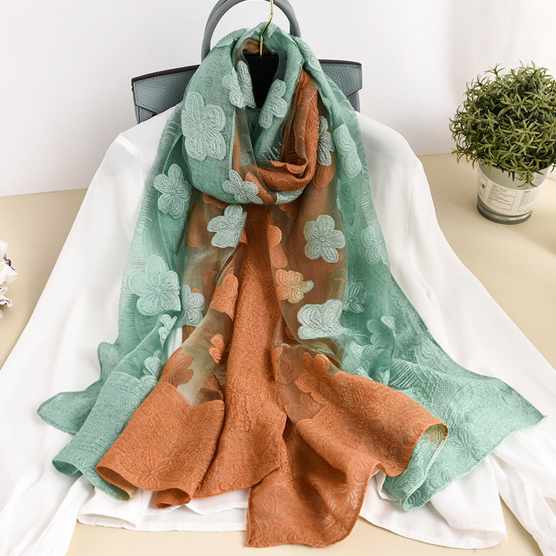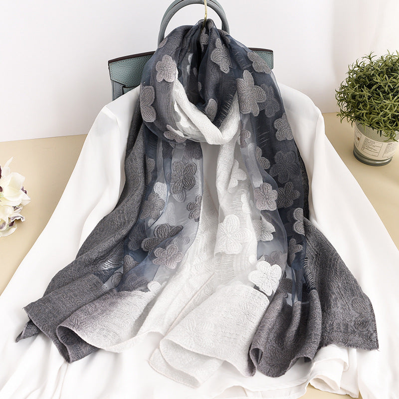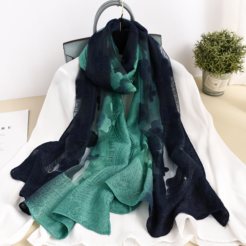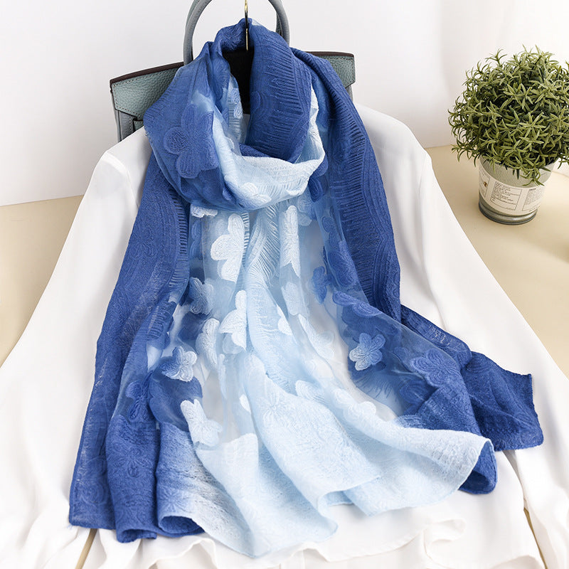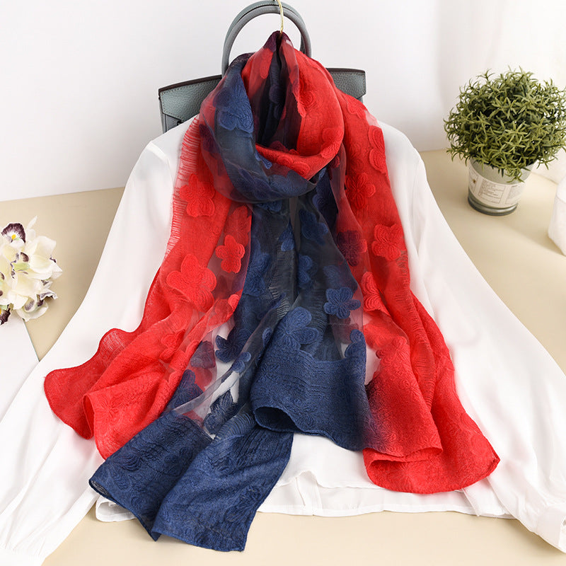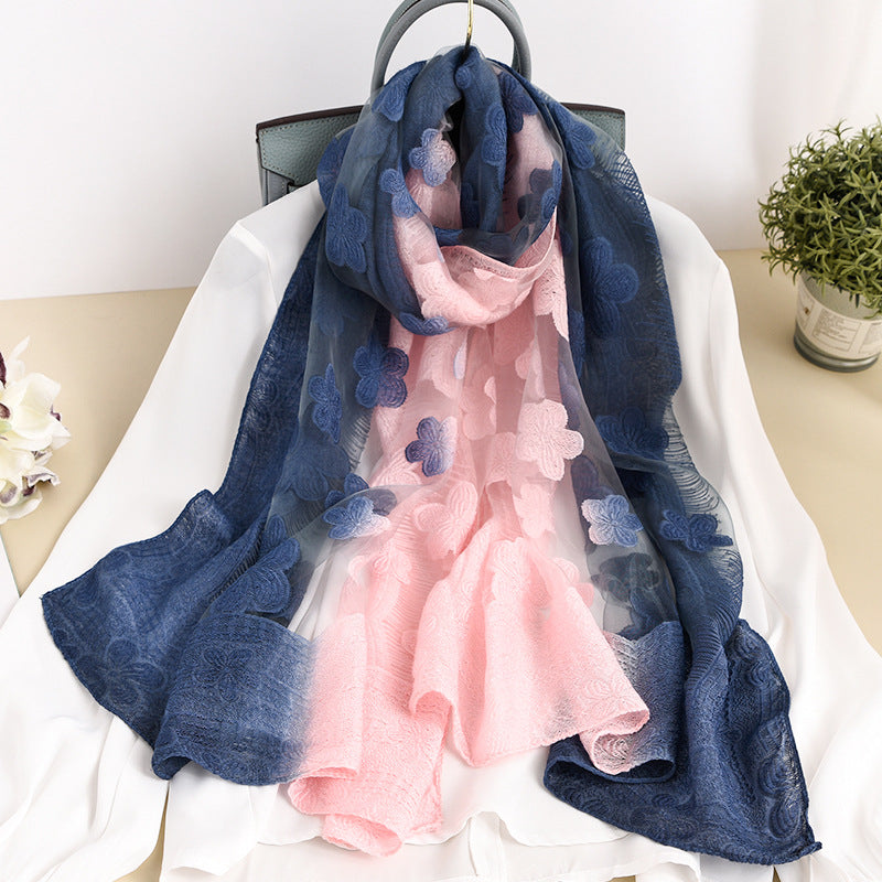 Lace Hollowed Out Flower Cutting Gradient Rose Scarf