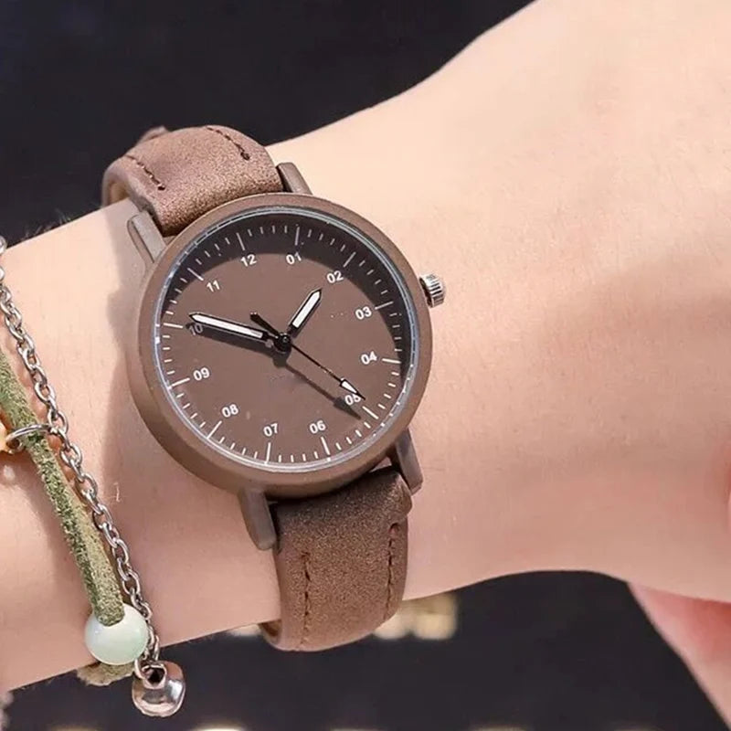 PU Leather Strap Waterproof Round Dial Retro Bracelet & Watch