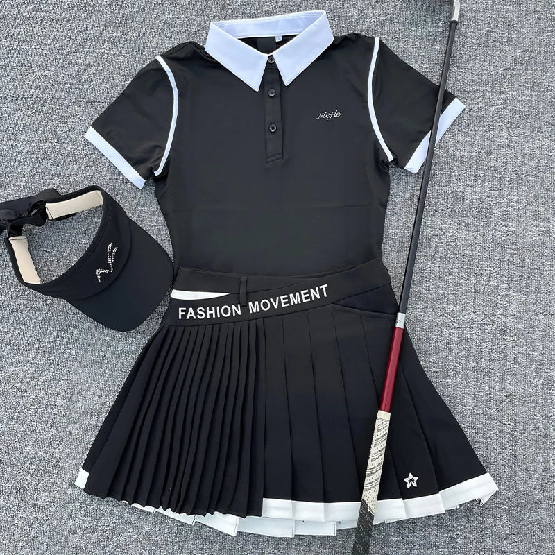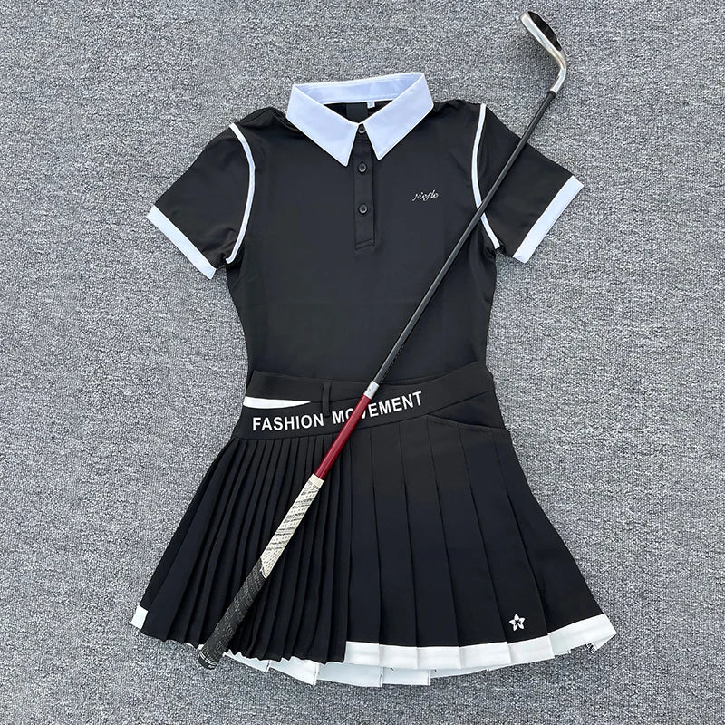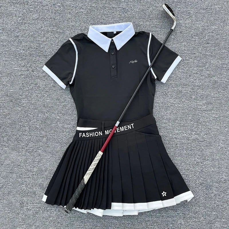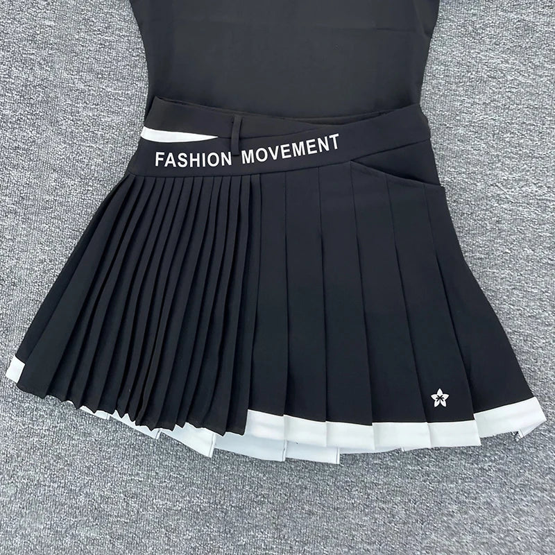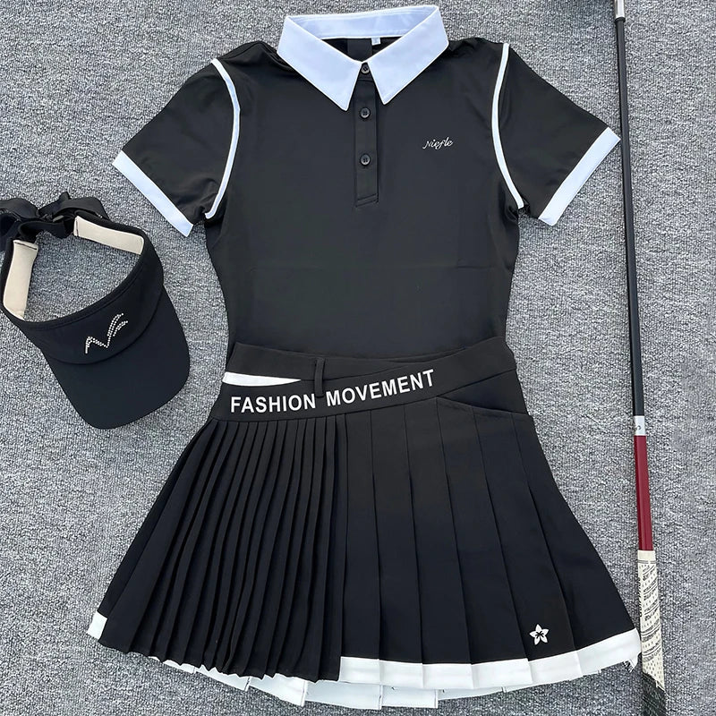 Women's Short-Sleeve Slim Pleated Golf Polo Shirt Skirt Dresses
