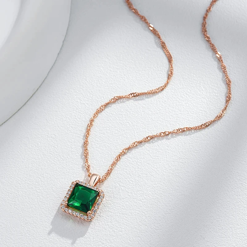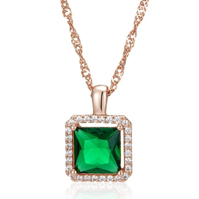 Square Green Zircon Pendant Necklace for Women – Gold Plated Emerald-Cut Stone