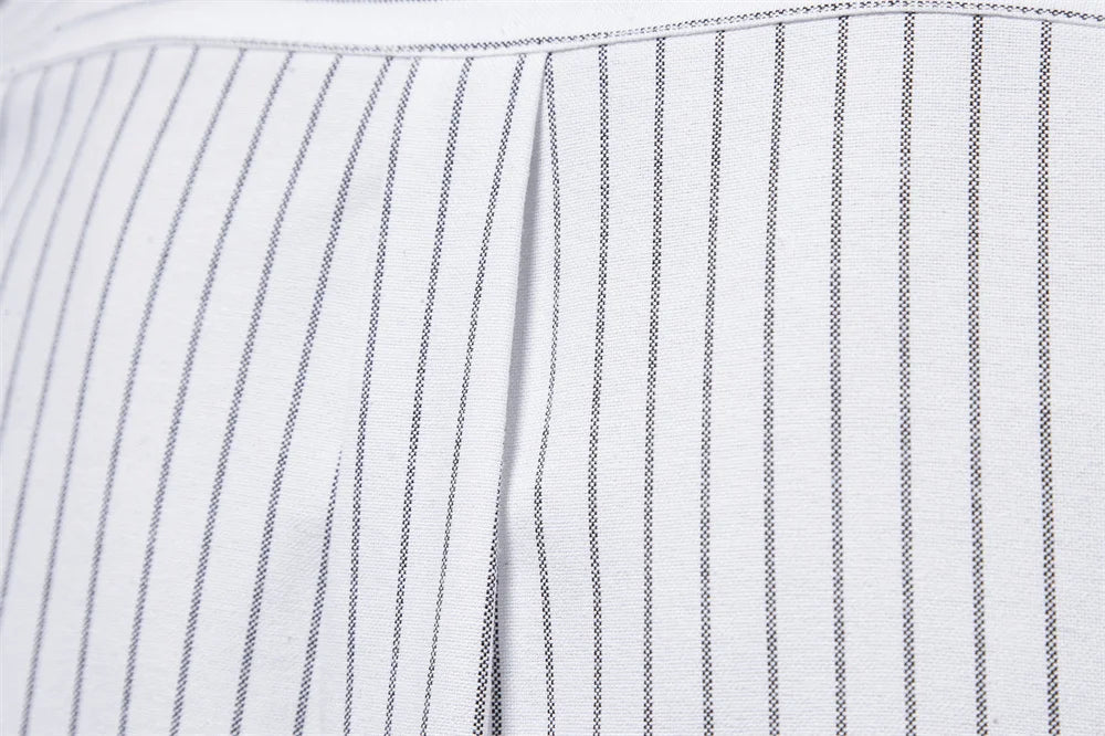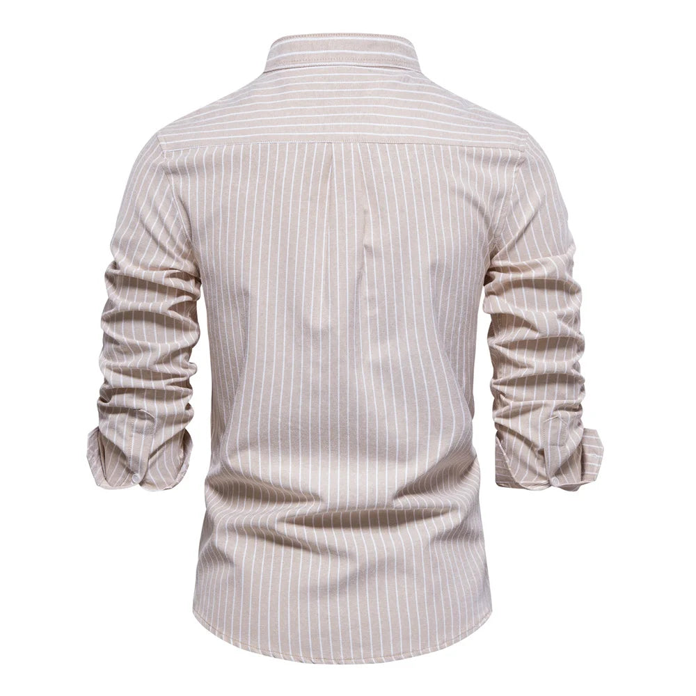 AIOPESON Solid Color Striped Men's Shirts Single Pocket Stand Collar Long-sleeved Shirts for Men New Spring Social Shirts Men