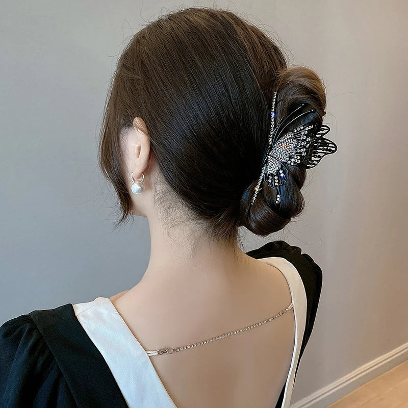 New Butterfly Geometric Hair Claw Clip Women Butterflies Tassel Chain Vintage Rhinestone Hairpin Crab Hair Accessories Female