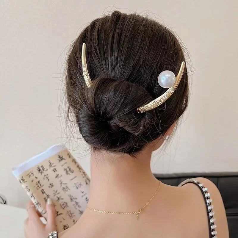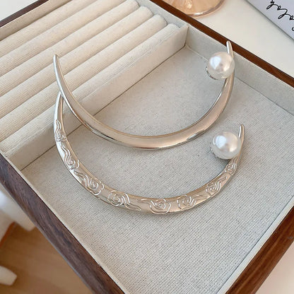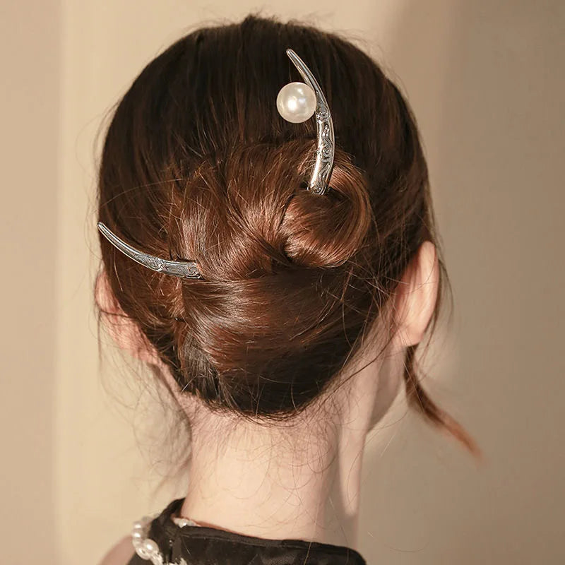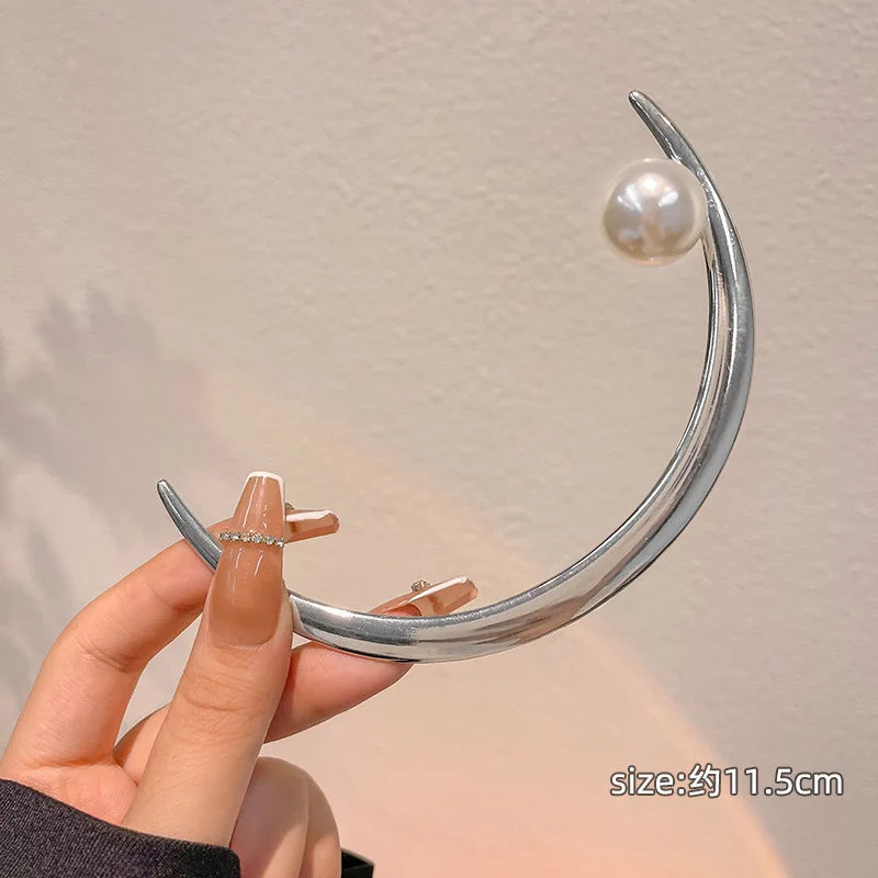Vintage Silver Half-moon Pearl Hair Clip