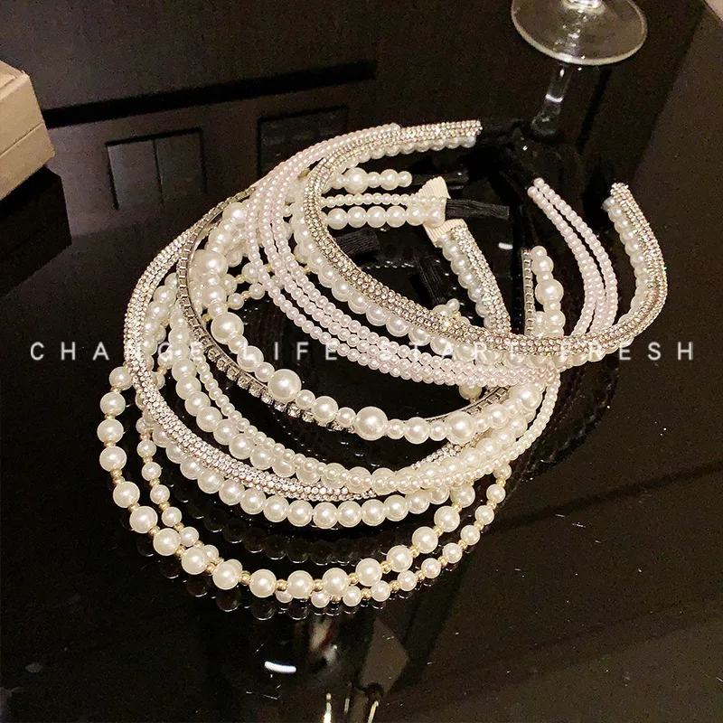 Women's Double Layer & Zircon Headband Sparkling Rhinestone Hairband Pearl Hair Clip