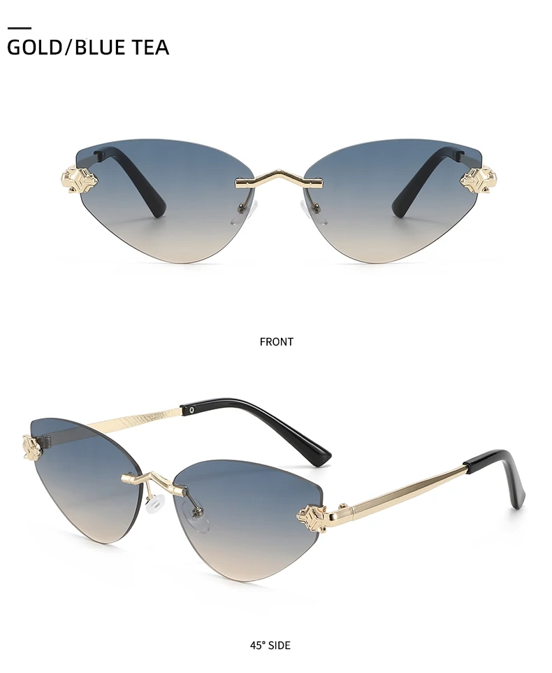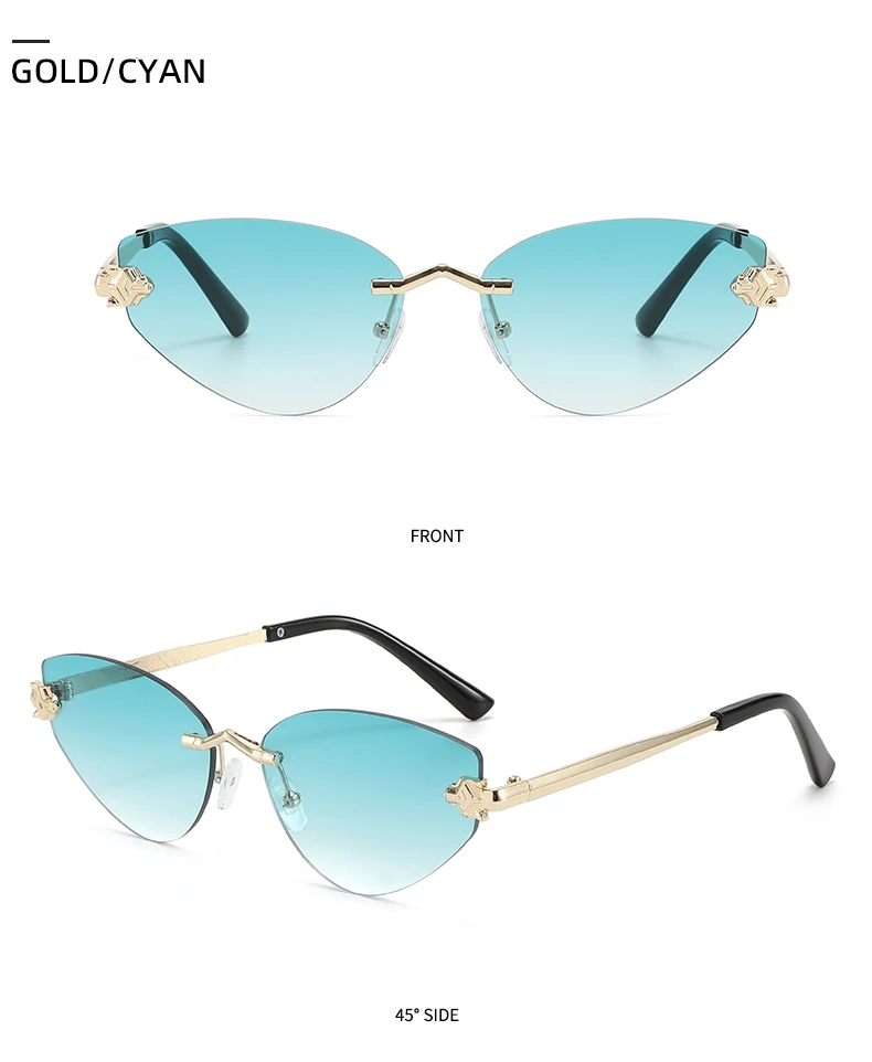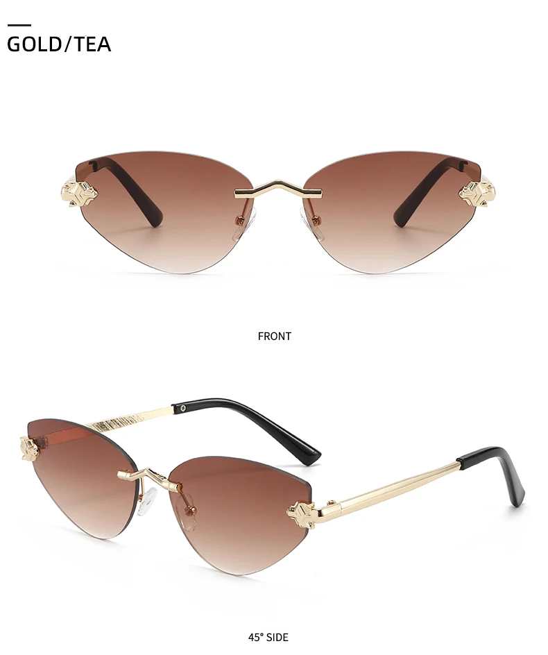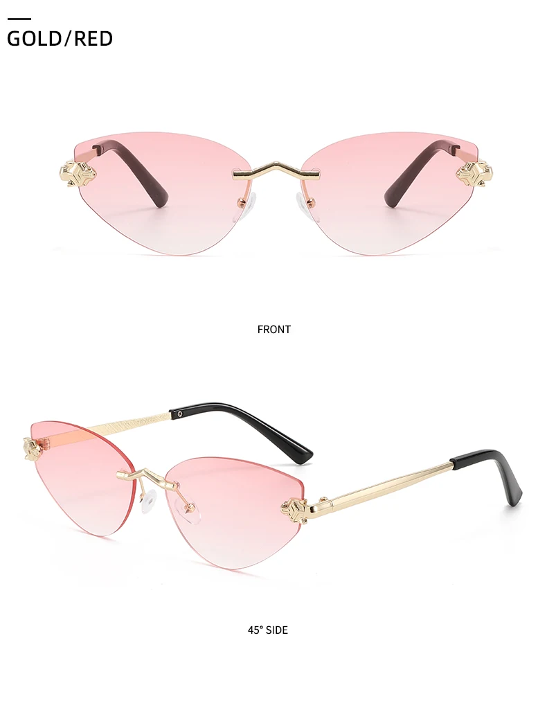 Retro Rimless Cat Eye Sunglasses for Women – Metal Frame UV400 Sun Glasses