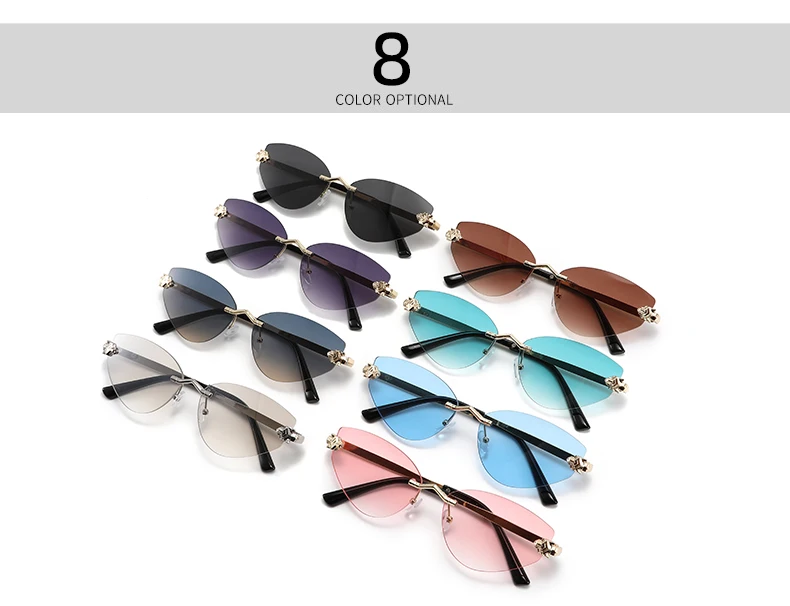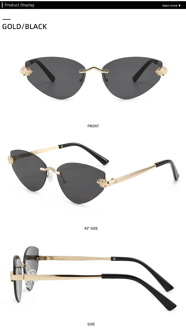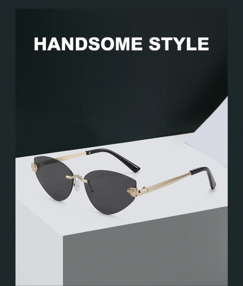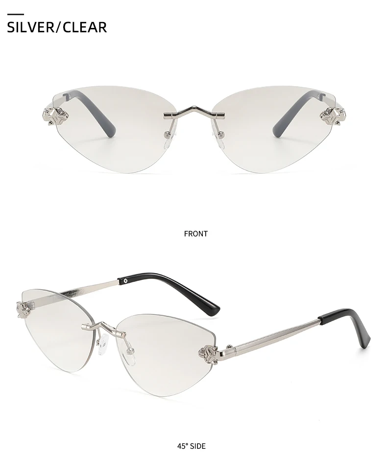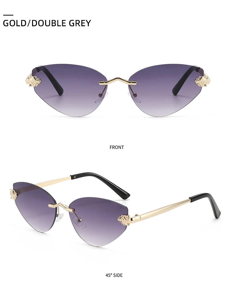 Retro Rimless Cat Eye Sunglasses for Women – Metal Frame UV400 Sun Glasses